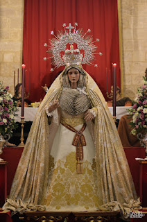 Nuestra titular, María Santísima de la Paz, fue vestida por nuestro vestidor Juan López, ayudado por las camareras de la hermandad.